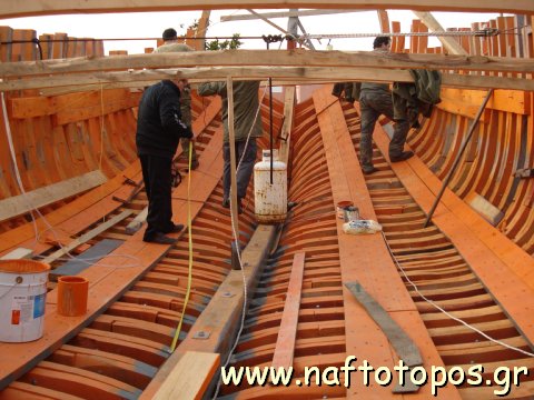 Μόλις δε βάλαμε και τα πρώτα καμάρια σκεφτόμασταν πώς θα χωριστούν οι καμπίνες, σε τι πλάτος θα μπει το μαουλοπόρτι και που θα είναι του μηχανοστασίου ο μπουλμές. Κάθε μέρα έχει και τις διαβουλεύσεις της για το επόμενο βήμα, το επόμενο ξύλο, το επόμενο χώρισμα.